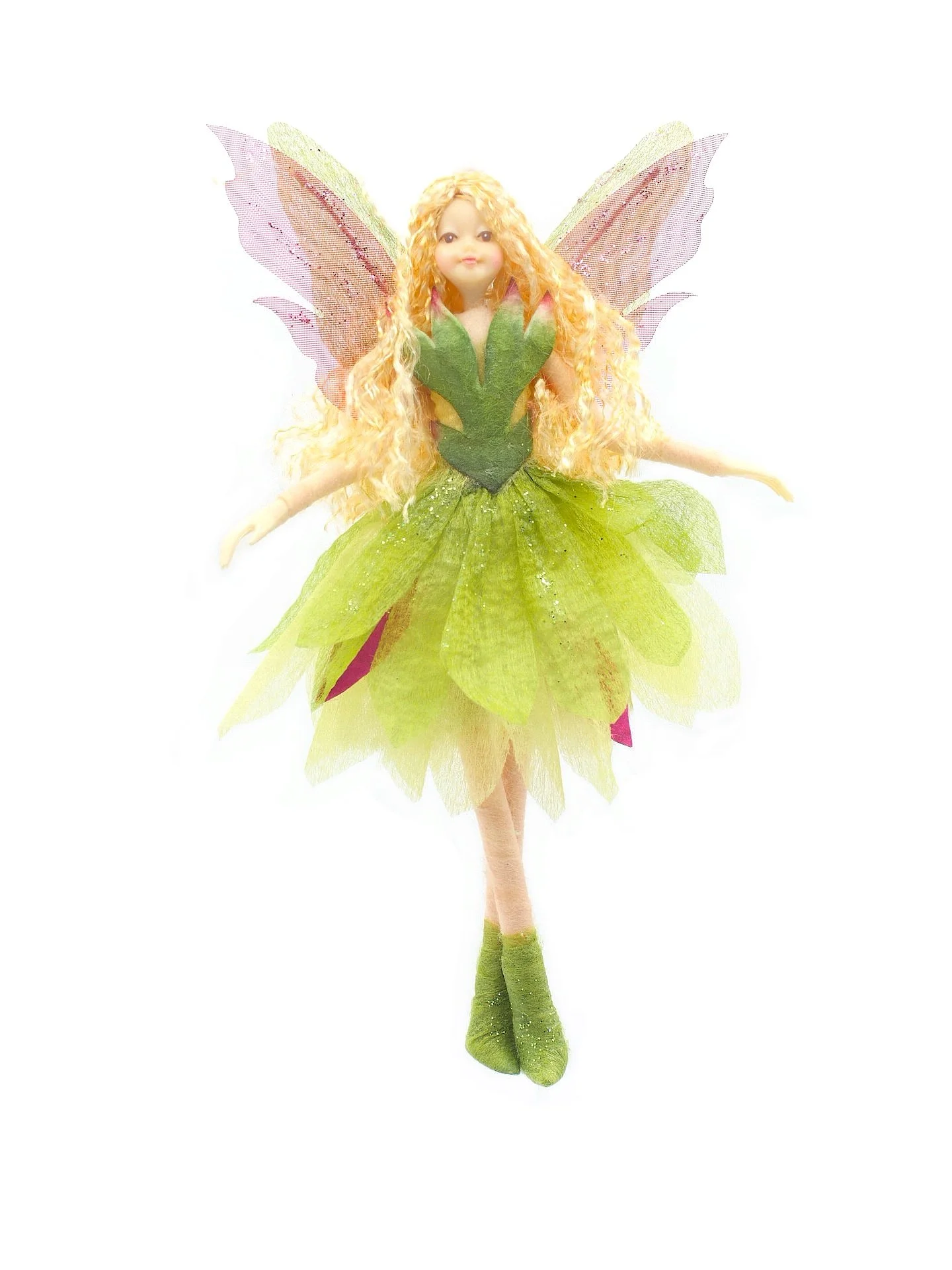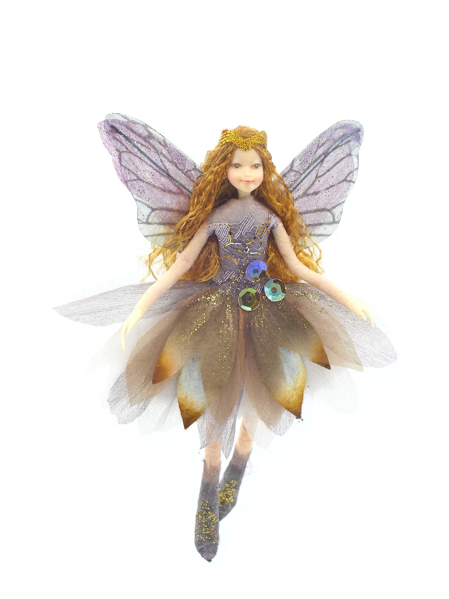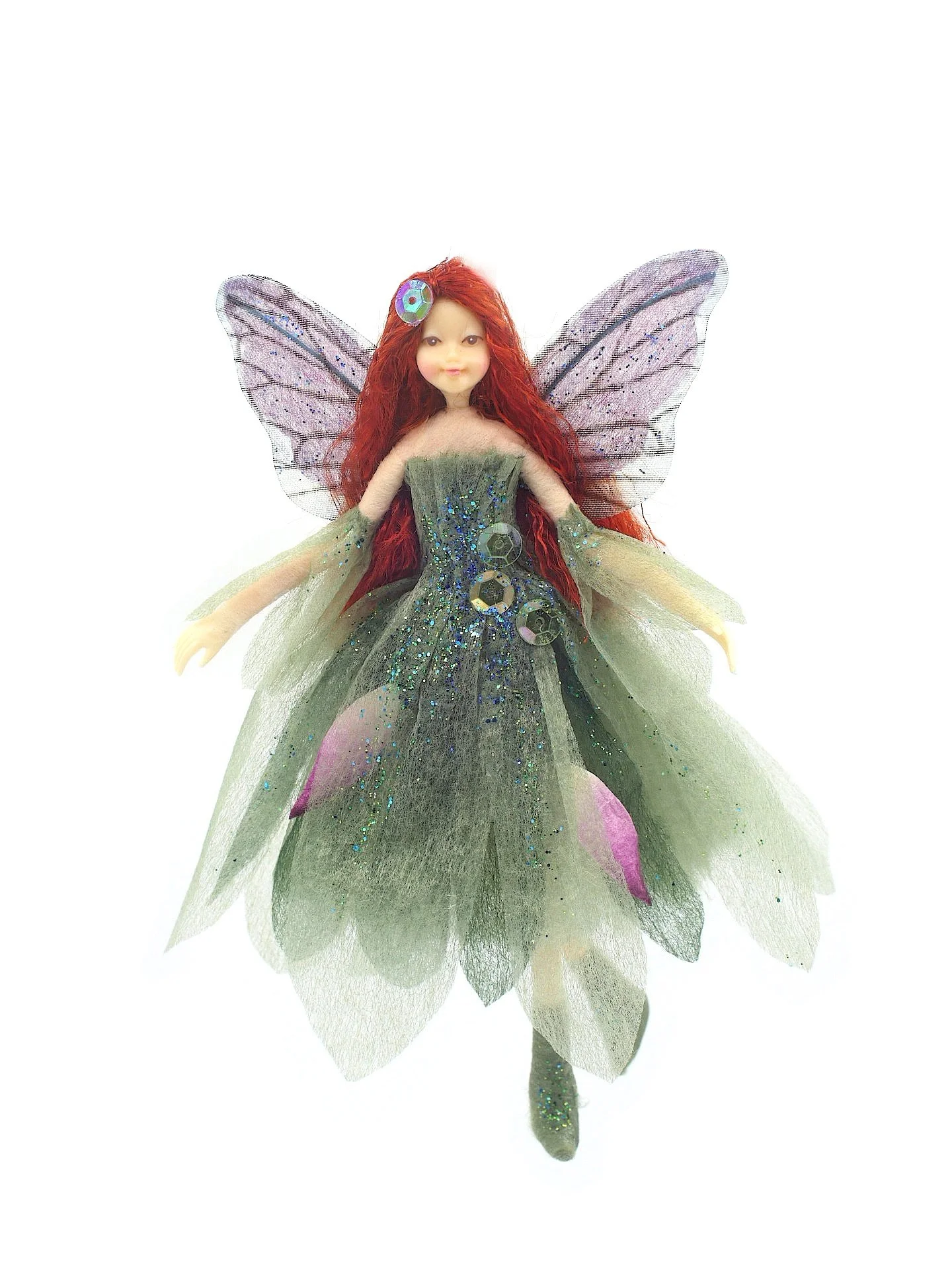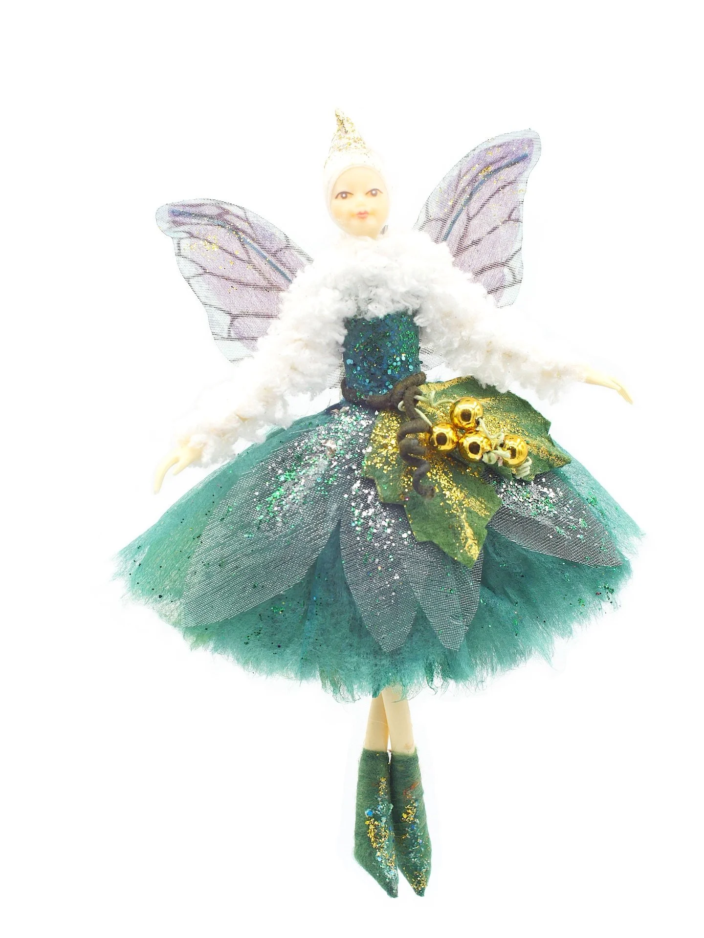 The fairies are ethically produced in Thailand. Each one is finely detailed with hand-painted faces & a wide range of materials used in their clothing, including satin, silk, nylon, florist paper, plus sequins, glitter & beads. They are bendable & each comes with a golden thread on which to hang. All styles, except the mermaids, come with a bronze leaf to stand on. They are a wonderful addition to any Christmas tree and decor!