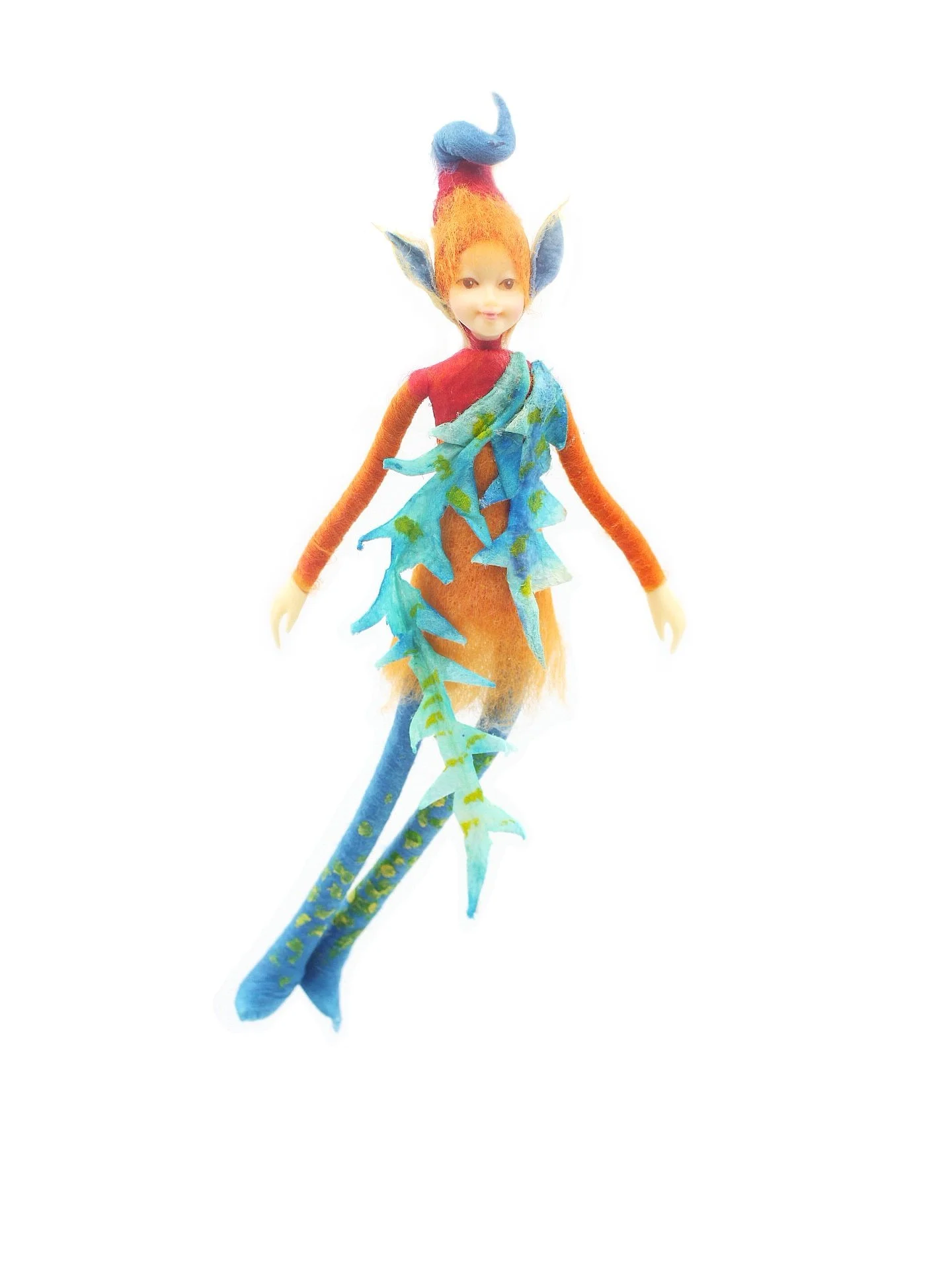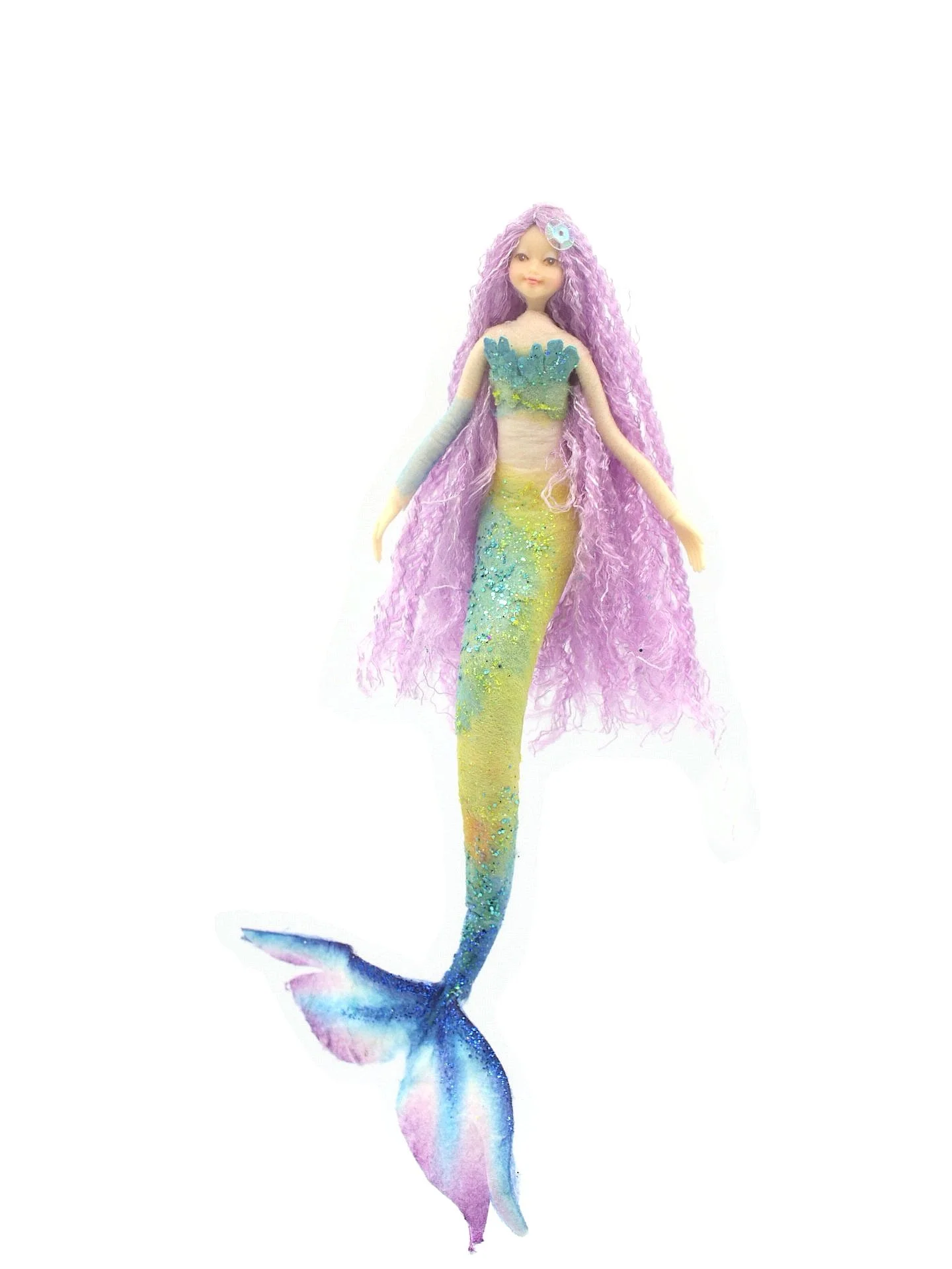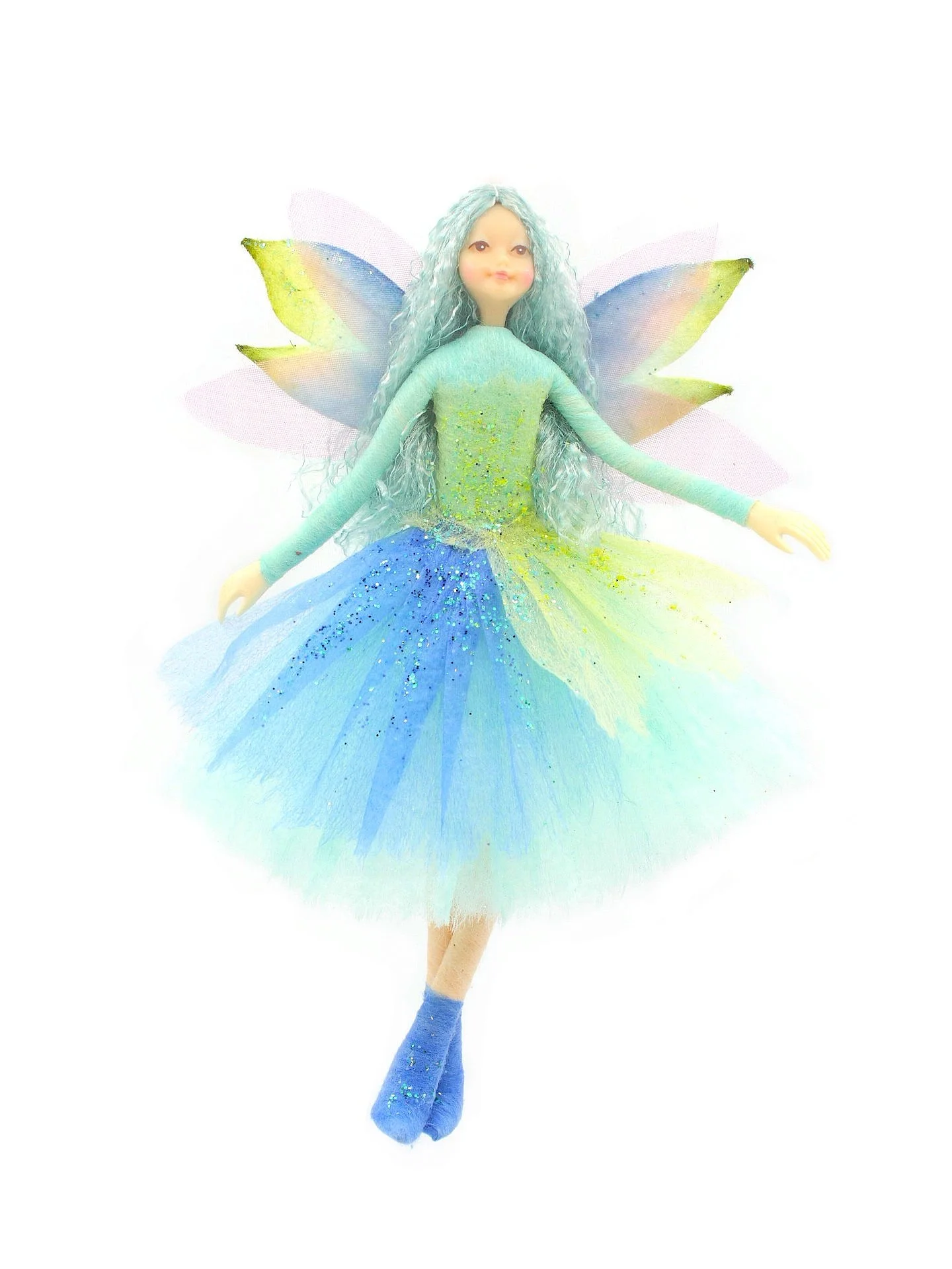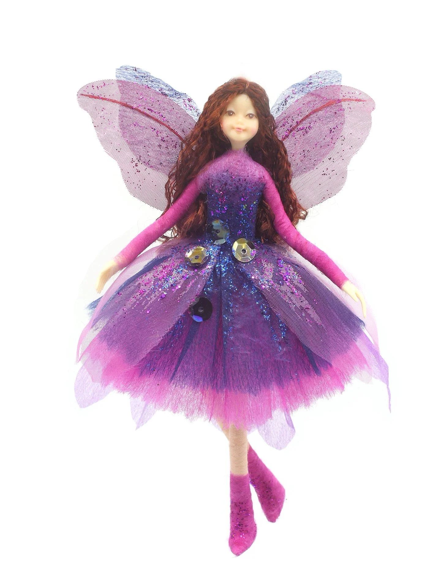The fairies are ethically produced in Thailand. Each one is finely detailed with hand-painted faces & a wide range of materials used in their clothing, including satin, silk, nylon, florist paper, plus sequins, glitter & beads. They are bendable & each comes with a golden thread on which to hang. All styles, except the mermaids, come with a bronze leaf to stand on. They are a wonderful addition to any Christmas tree and decor!